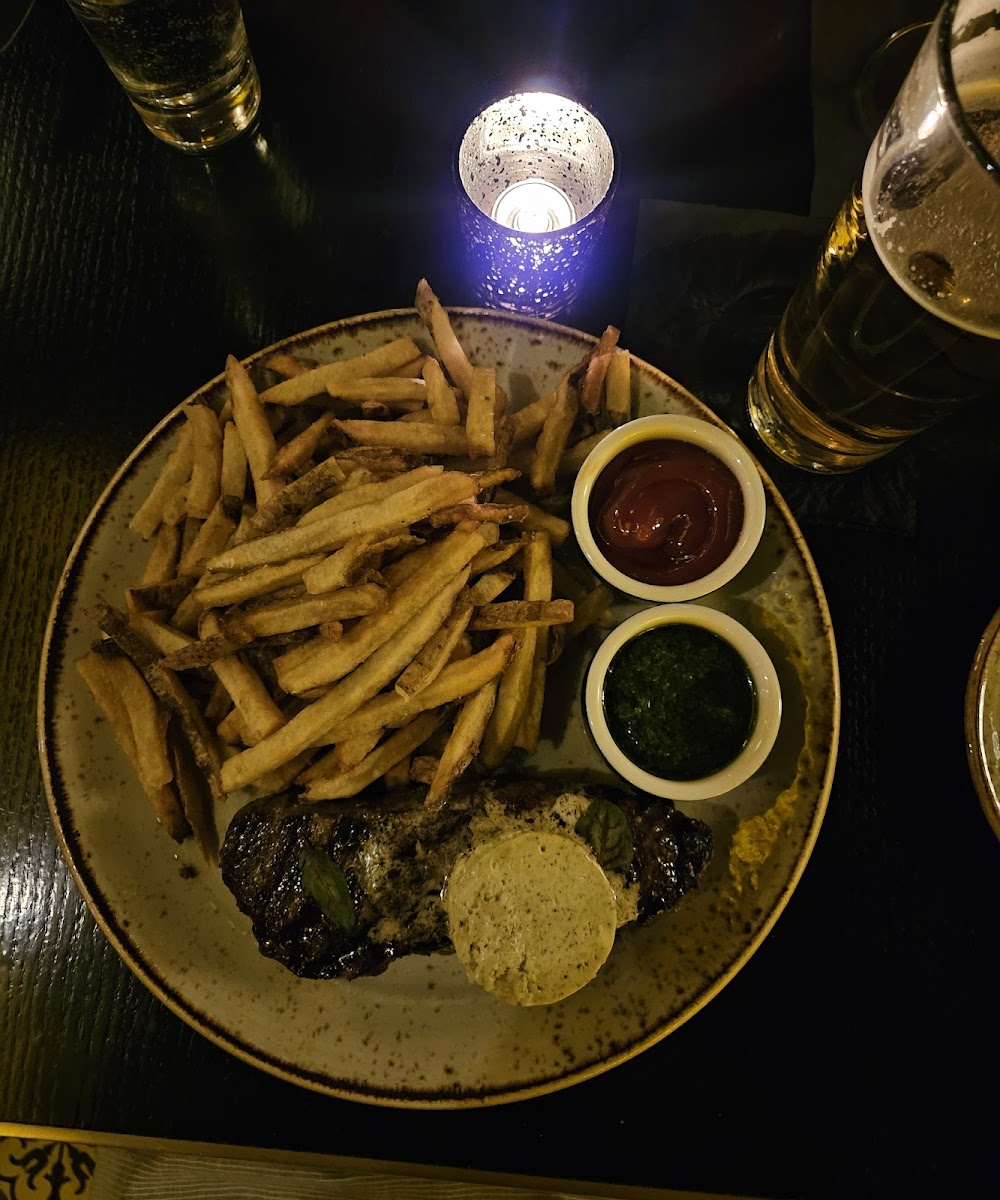 As you delve into the entrees, the New York Strip Steak Frites stands out, boasting a perfect 10 oz cut of grass-fed steak paired with handcut French fries, all drizzled with a tantalizing peppercorn compound butter. Vegetarians will rejoice over the Housemade Raviolo - a silky ricotta-filled pasta bathed in corn puree, making every bite a true indulgence.